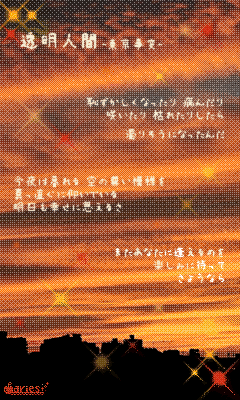 透き通る気持ちでちゃんと応えたいのさ 毎日染まる空と短い季節 まっすぐに仰いだら夕闇も恐ろしくないよ 僕は透明人間さ もっと透けていたい